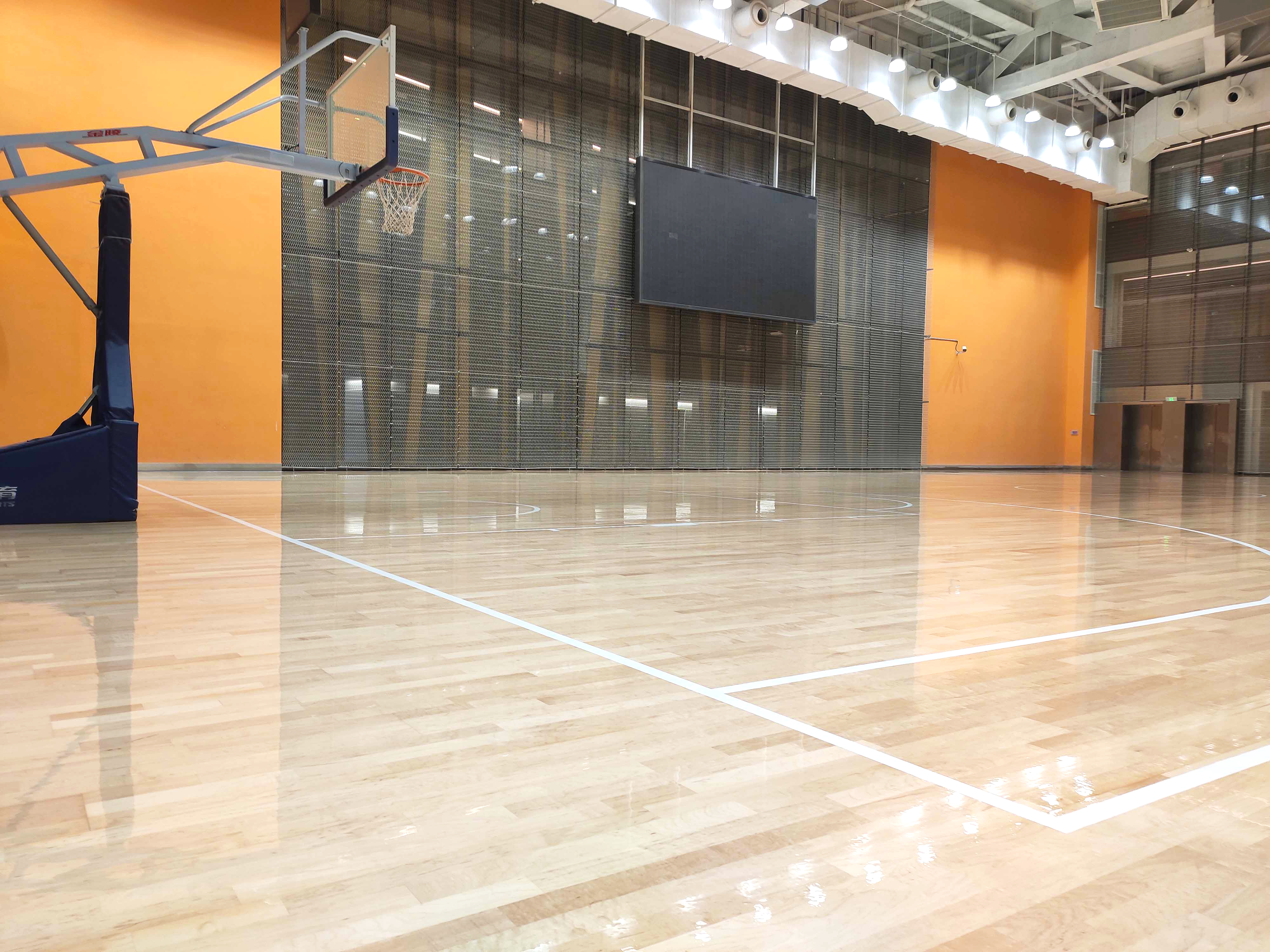 木地板籃球場是鋪設(shè)楓木運動地板,這種木地板彈性好,運動更加舒適