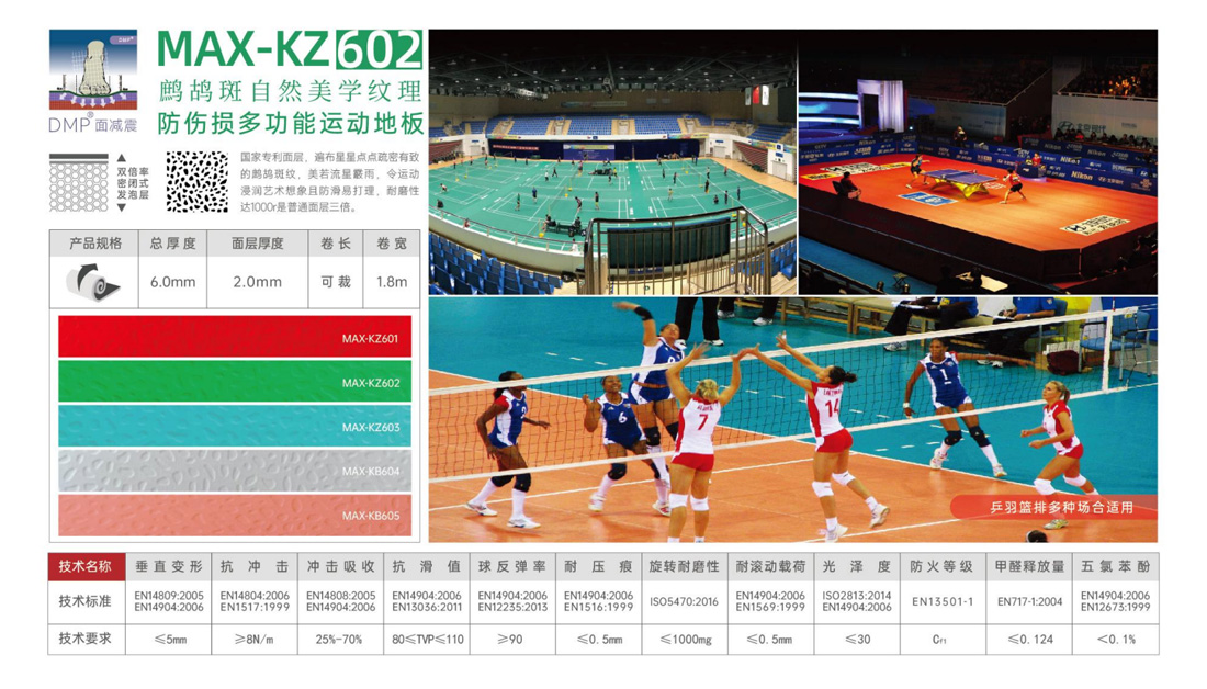 ⒊ 人性化的設(shè)計組合,與眾不同的場地色感,防滑且回應動力極強,防擦傷紋理,全新技術(shù)開發(fā)的PVC發(fā)泡緩沖層為健康運動帶來可靠保障,為專業(yè)運動員、普通健身民眾提供極好的運動緩沖保護,可最大限度地減小運動員的損傷,令您放心地馳騁在運動賽場上屢奪佳績。