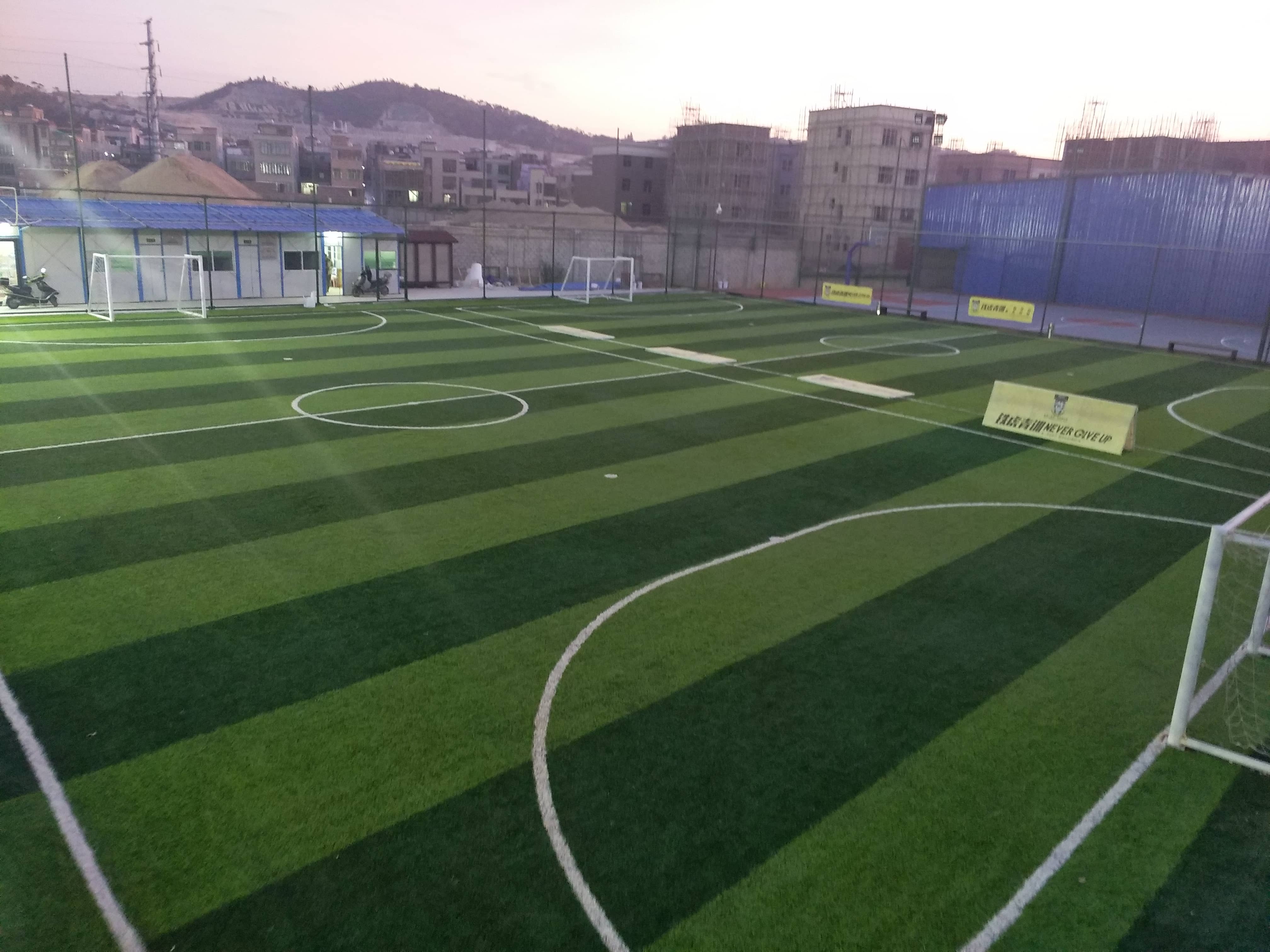 3、將草皮搬入場(chǎng)地沿橫邊方向攤開(kāi),并依次由縱邊的一端向另一端推進(jìn),攤開(kāi)時(shí),盡量使織在草皮上的白劃線處于功能線位置上,減少切割的數(shù)量;